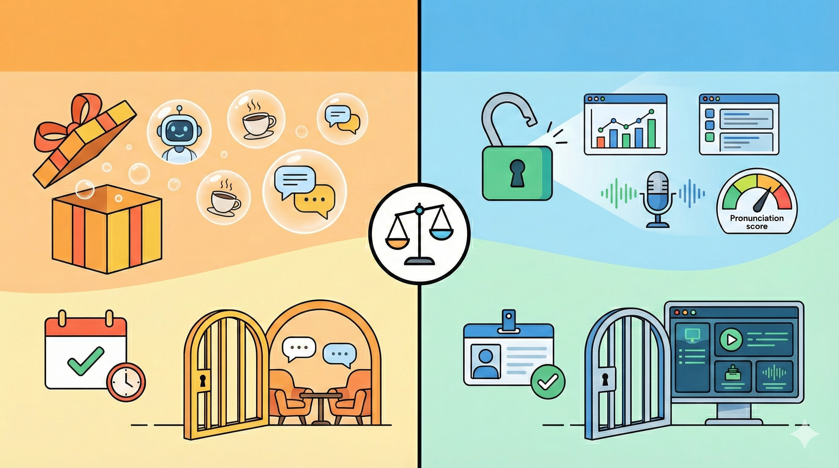 | 重視する機能 | 文脈に合った自然な表現の習得 | 発音矯正とより良い表現の指摘 |