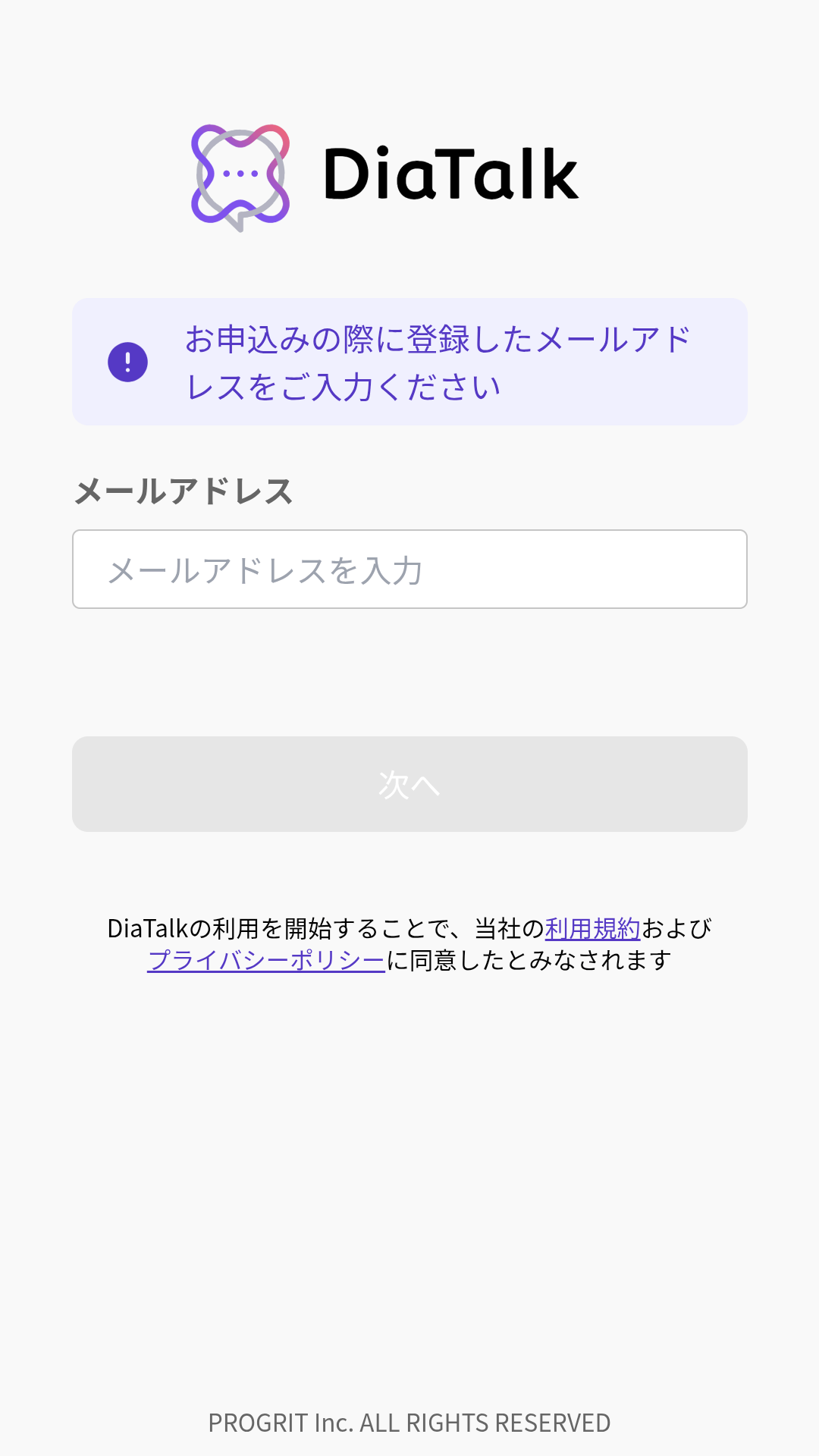 アプリを起動したら、先ほど登録したメールアドレスを入力して進みます。