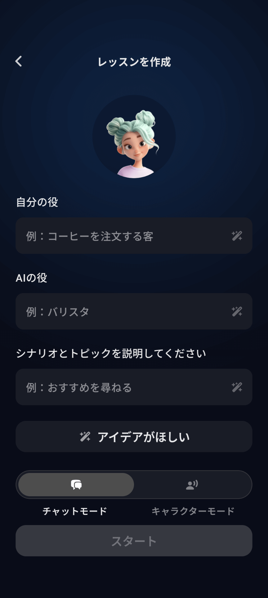 ディアトークはまずシチュエーションを選び、いきなりAIとの会話から入るスタイルが基本で、会話の後にフィードバックを受けて改善していく流れとなります。