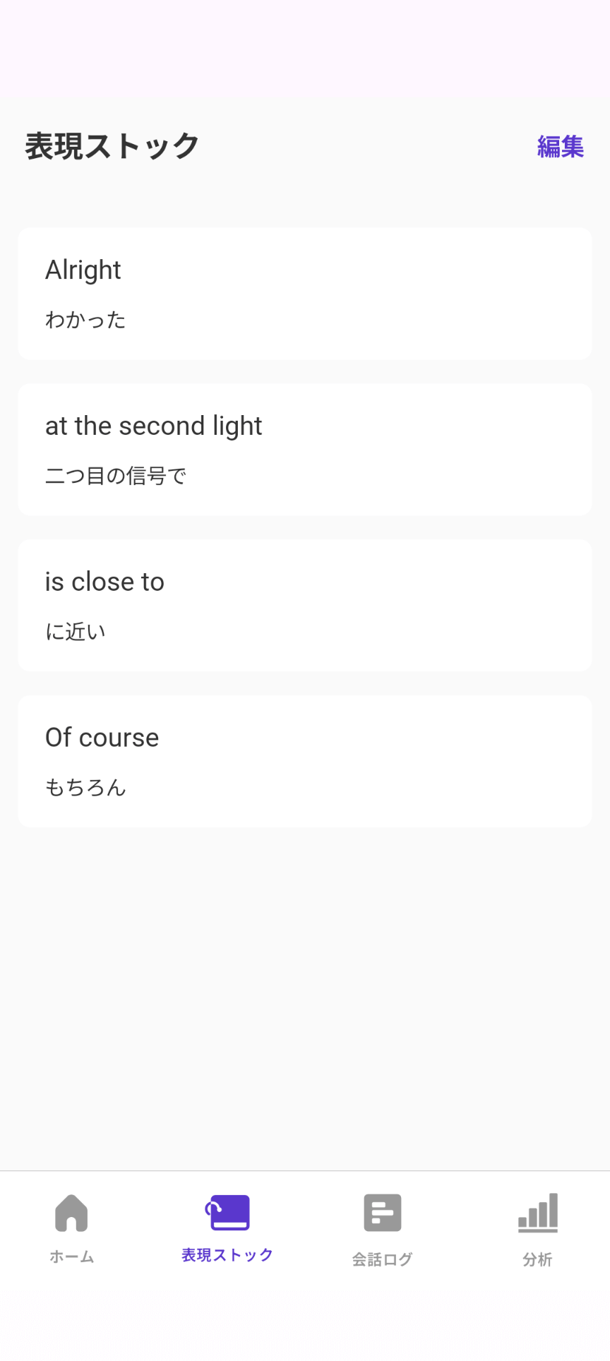 また、学習したフレーズをストックすることができ、後から確認して定着させることができます。