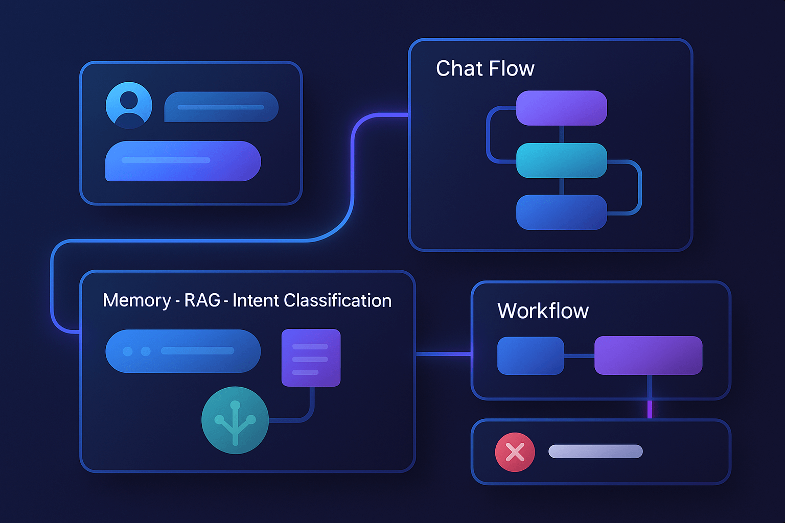 メモリやRAG、意図分類は、対話の質を上げるための要素です。メモリはユーザーの発言を保持し、次の回答へ反映できます。RAGはナレッジの検索によって正確な情報を提示できる機能です。意図分類は入力の方向性を判断し、対話の流れを調整しやすくなります。