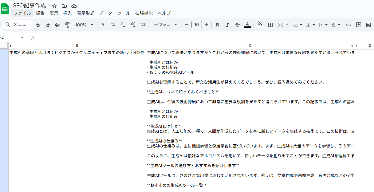 例えば、毎月30本の記事を作る必要がある業務では、一つずつ手動で進めるより圧倒的に効率的です。