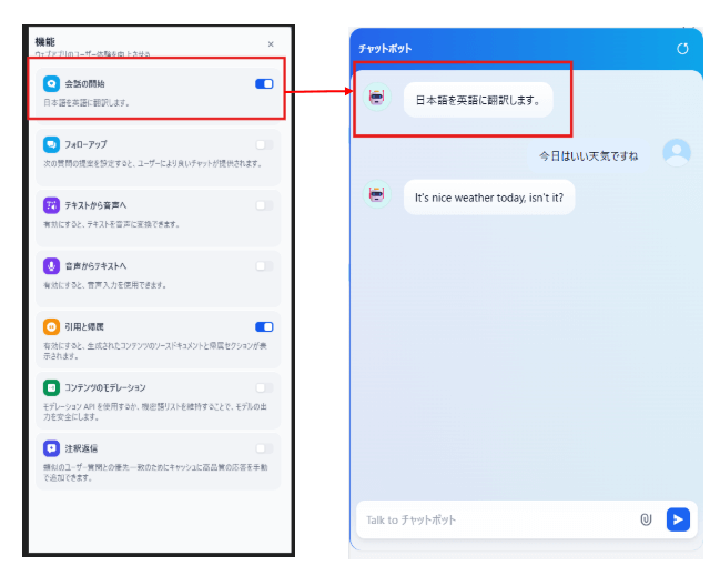 チャットボットは、モデルとの対話をすぐ試せるシンプルなチャット形式で、FAQや一問一答の用途に向いています。