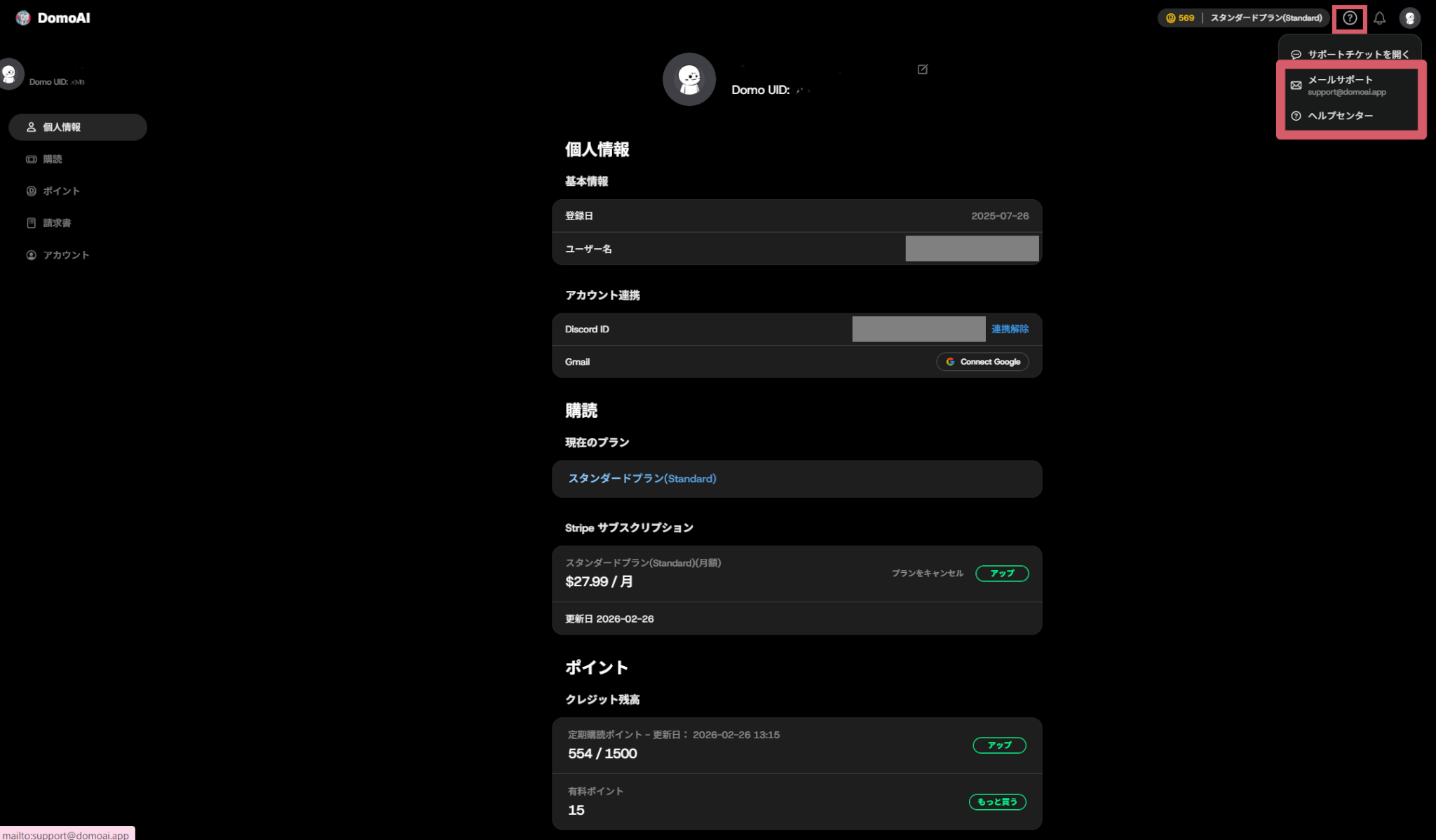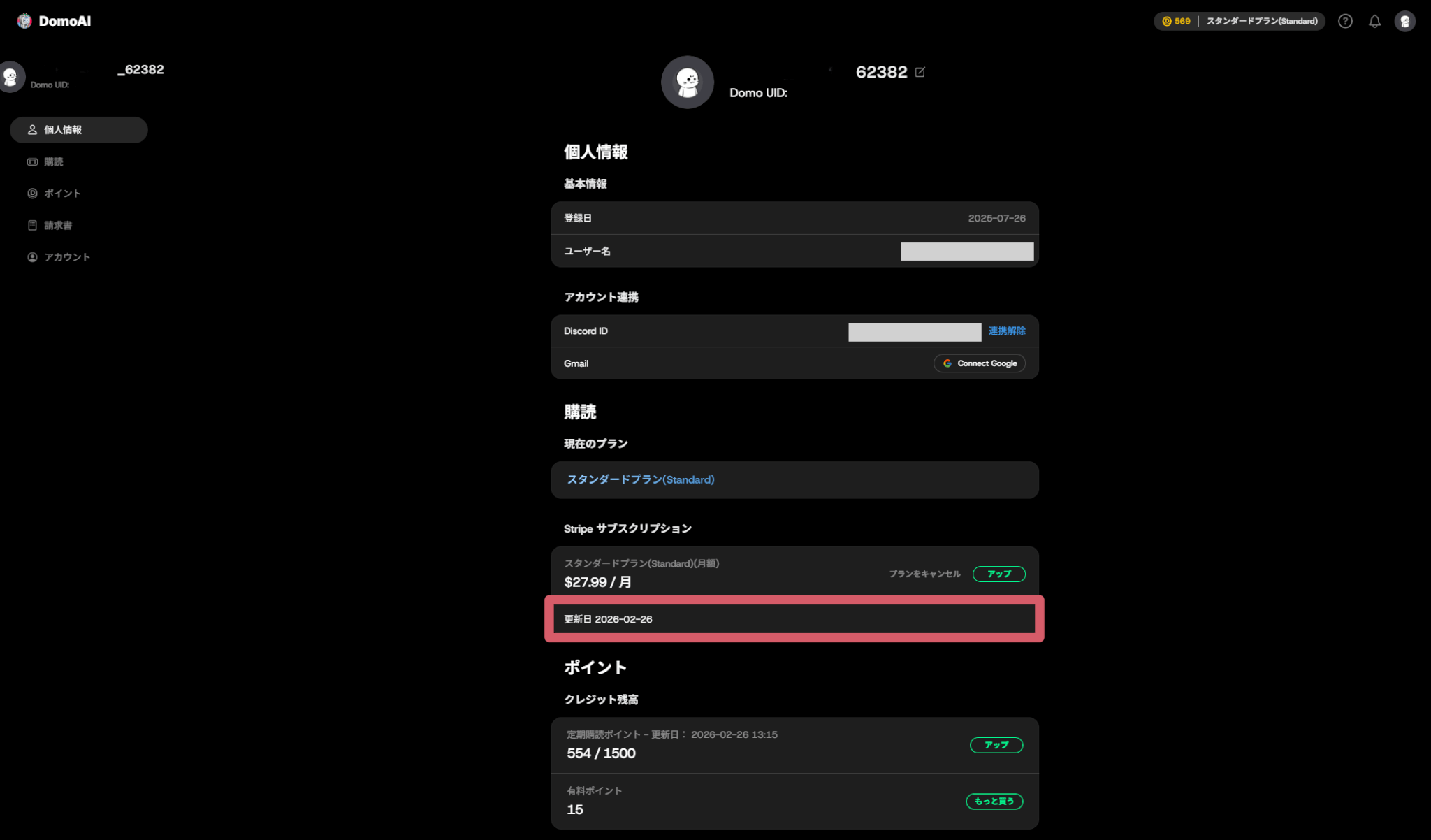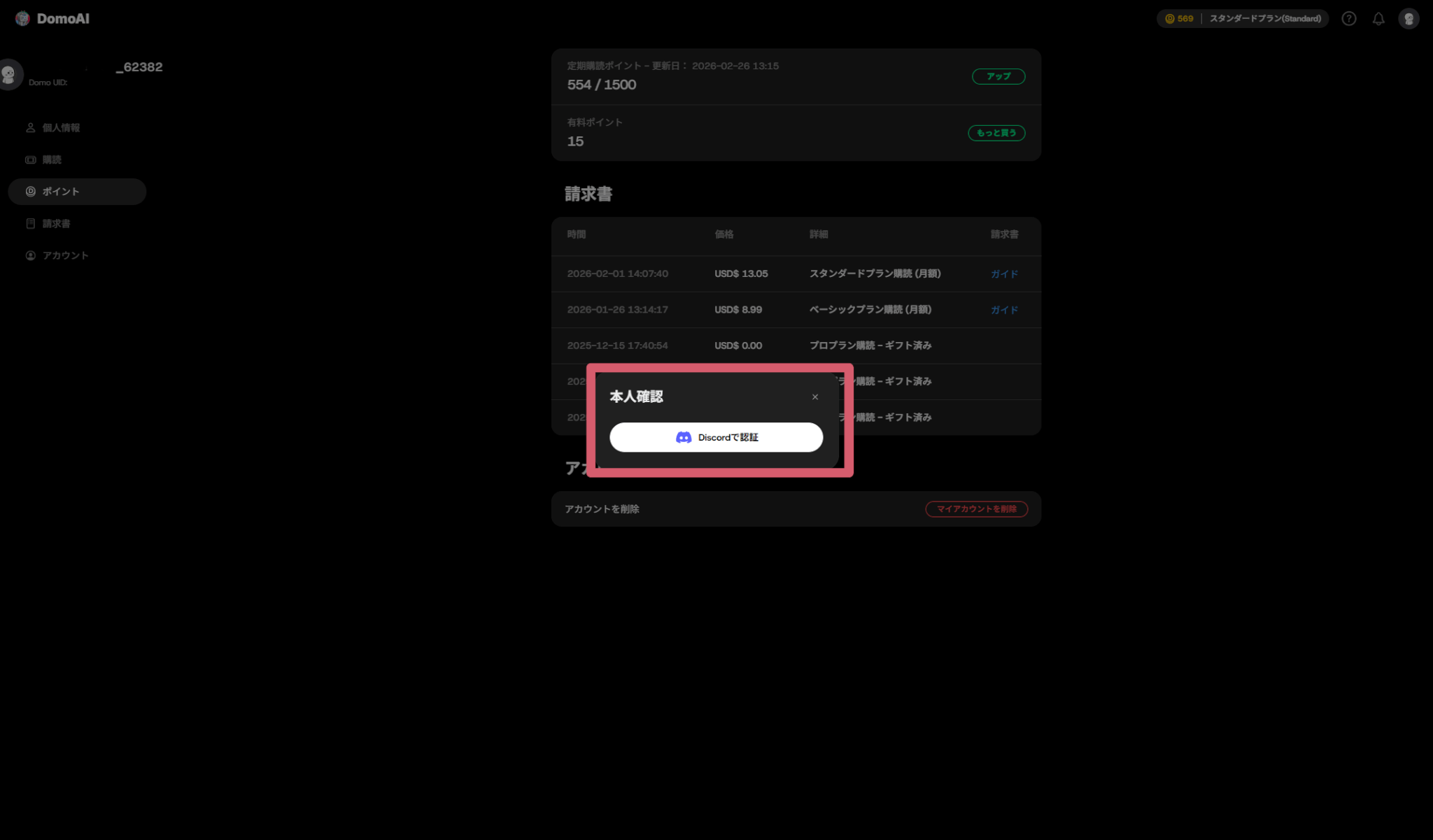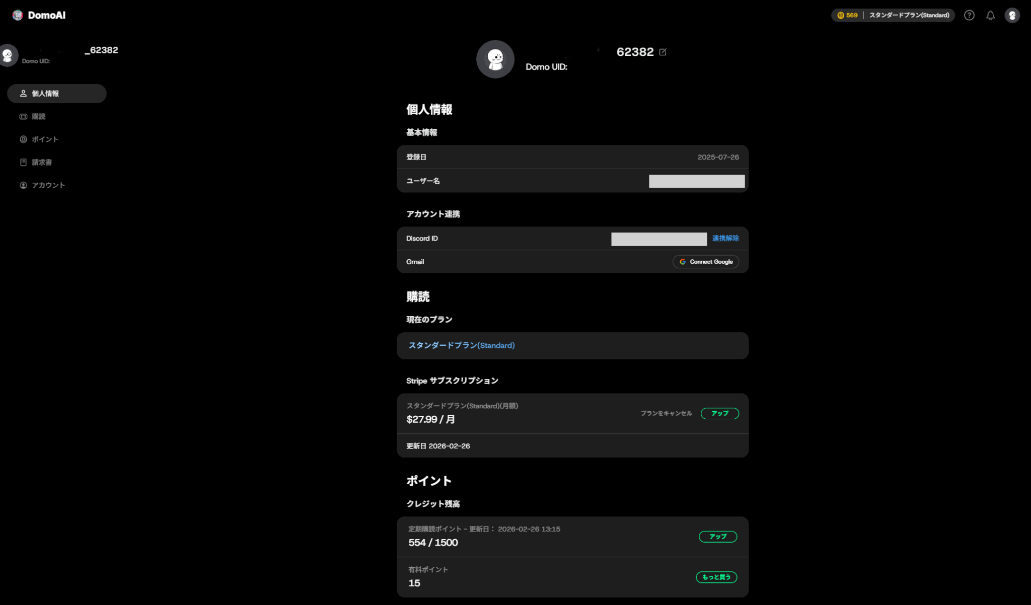 DomoAIはログイン方法が複数あり、たとえばDiscordログインとGoogleログインで別のアカウントとして扱われる場合があります。購読情報が空に見えるときは、最初にログイン方式の取り違えを疑ってください。