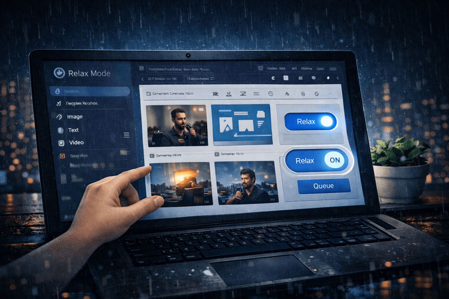 たとえば、リラックスモードで同じ条件(比率・秒数・カメラ)を固定したまま試作を量産し、雰囲気や構図の方向性を決めるやり方です。