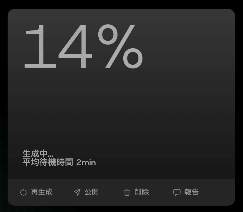 ですが、同時に生成する動画の本数を増やすほど待ち時間が増える可能性はあります。