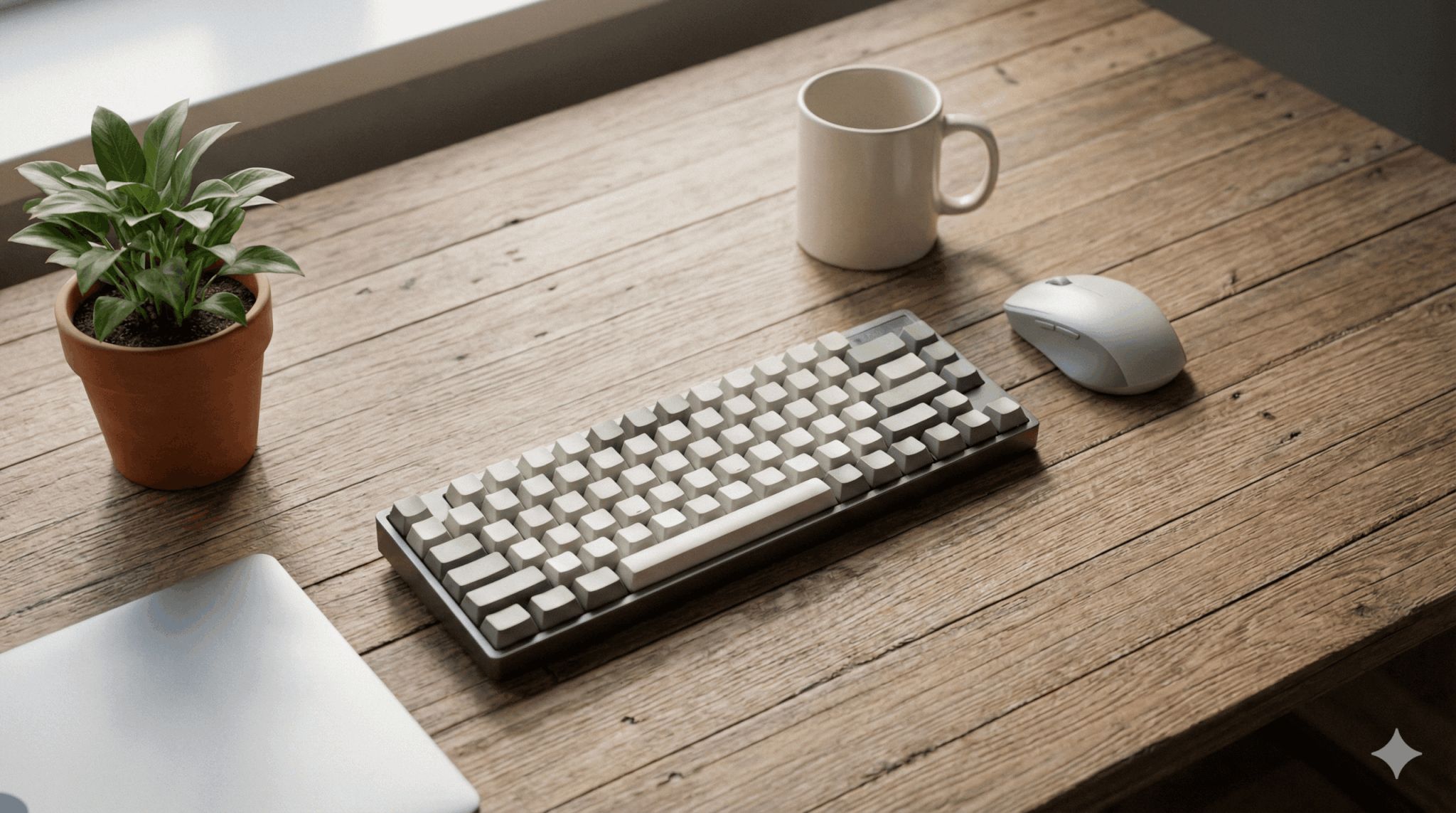 プロンプト(日本語) フォトリアルな在宅デスクの静物シーン。構図と物の配置は元画像のまま固定:木目の机、メカニカルキーボード、白いマウス、白いマグカップ、観葉植物(鉢)、左下のノートPCの端。 動きは控えめで自然に:木目の上を日差しがゆっくり移動し、影が柔らかく動く。植物の葉がわずかに揺れる。マグカップから湯気がうっすら立つ。 カメラはごく弱いスロープッシュイン(微ズーム)で、パララックスは控えめ。 質感はリアル、ピントは安定、照明は自然、ディテール維持。スタイル変更なし。 ネガティブプロンプト(日本語) 低品質、ぼけ、チラつき、フレームごとの揺れ、歪み、溶ける、物体の形が変わる、配置が変わる、物が増える/消える、キーボードのキーの変形、マウスの形崩れ、マグの変形、文字やロゴ、透かし、字幕、過度なカメラ揺れ、不自然な動き、アニメ風、イラスト風、CGっぽい質感、過彩度
