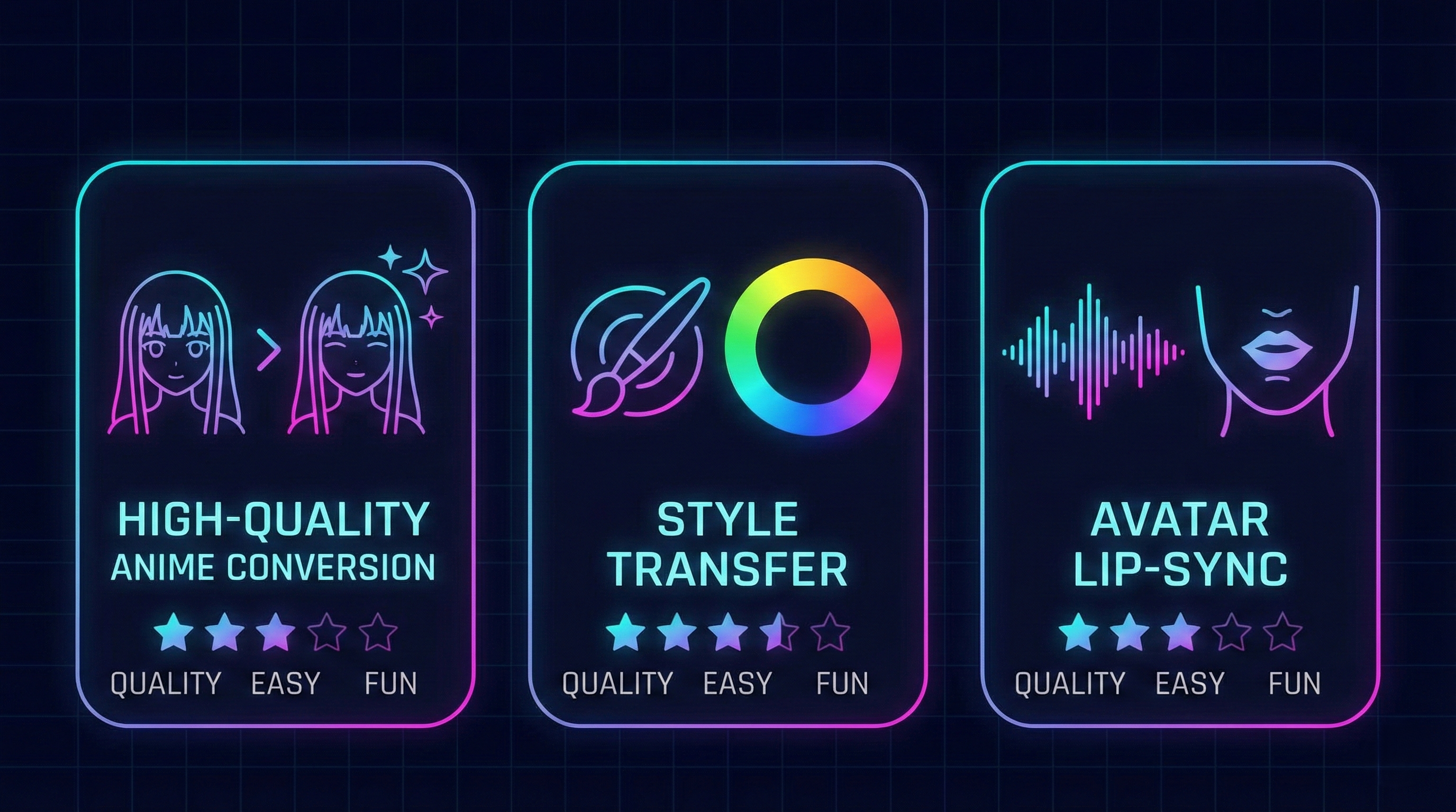 DomoAIが合いやすいのは、短尺素材を使ってアニメ化やスタイル変換を試し、見た目のテイストを変えた動画を複数作って比較したい人です。