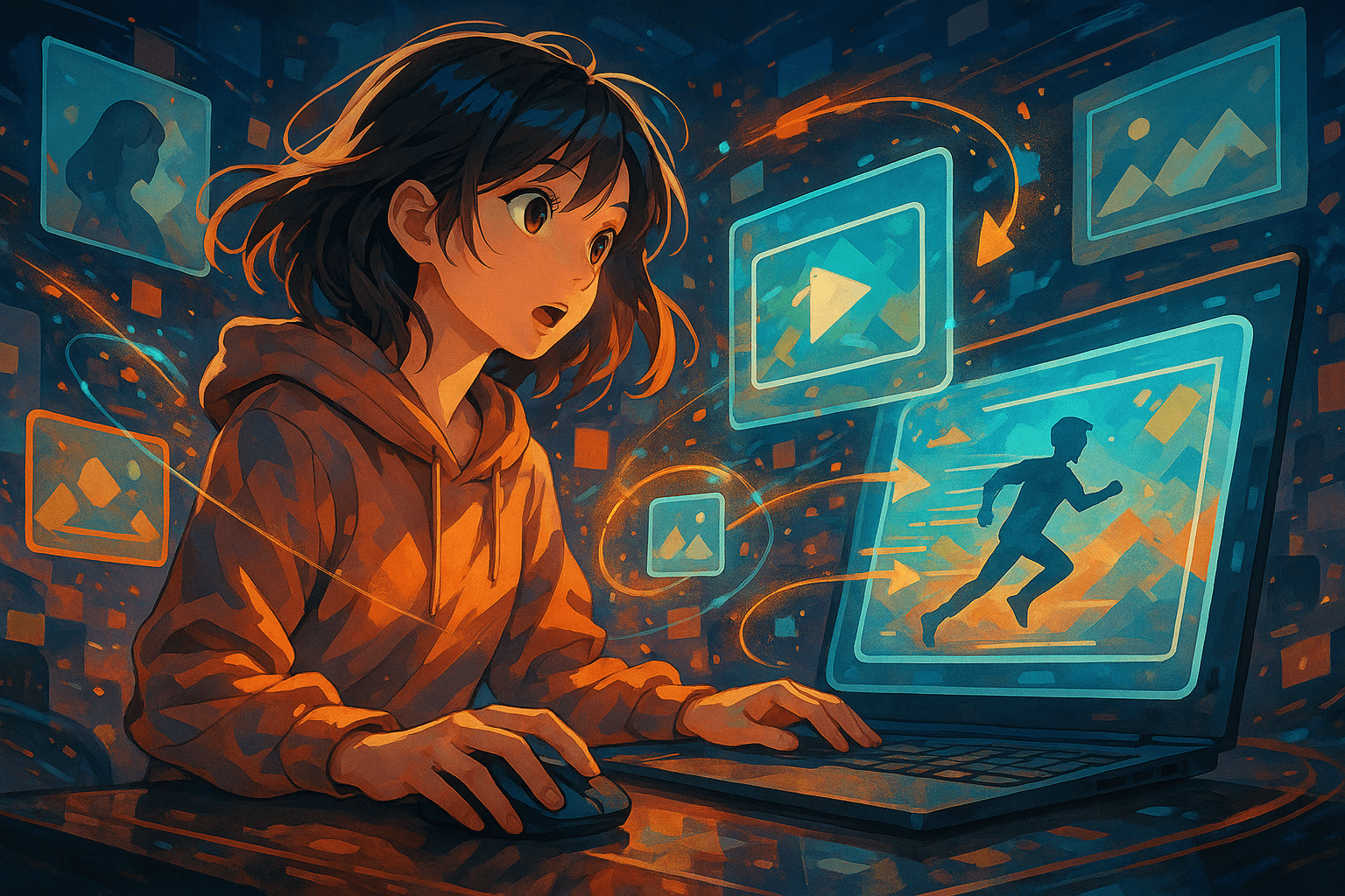 一方で表情や情景などの細かな情報はそぎ落とされるため、緻密さが求められる映像には不向きです。MVの演出カットやアート寄りの短編の一部に組み込むと、印象的なシーンを作りやすくなります。