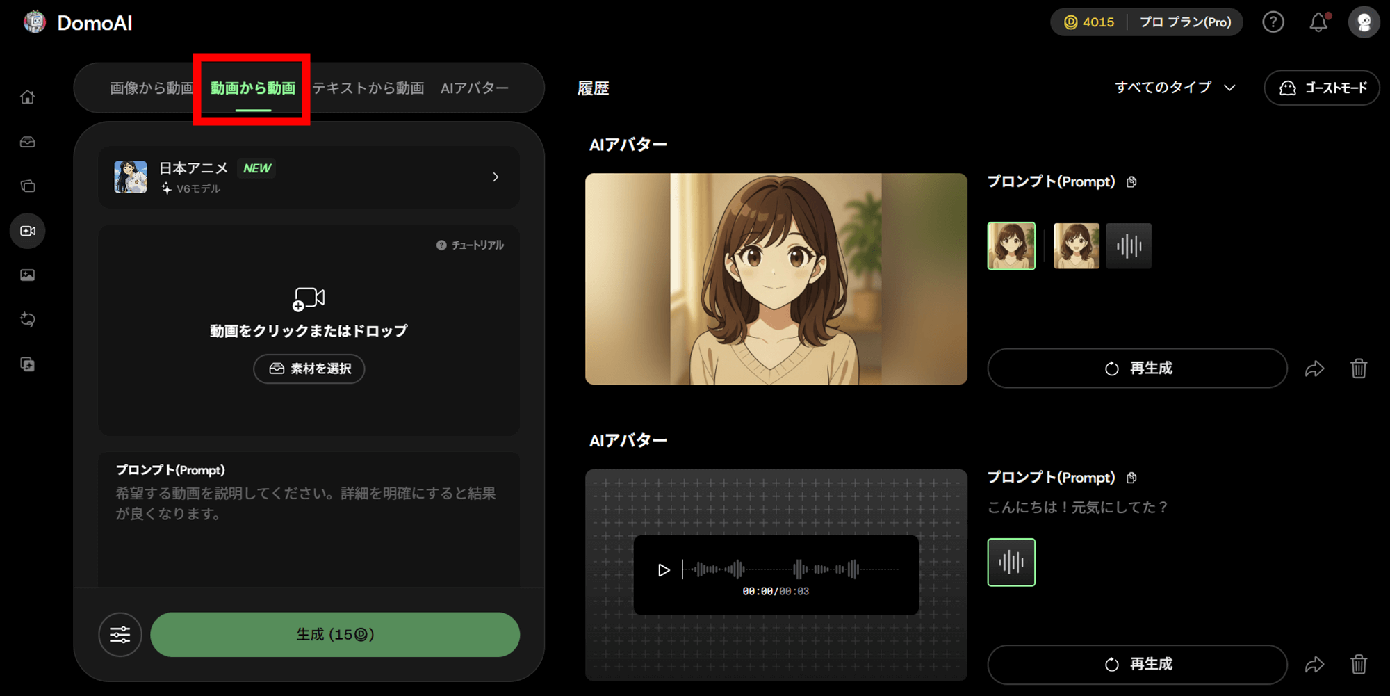 DomoAIのAIフィルターで動画生成(動画から動画)を使えば、手持ち映像を活かしつつ多彩なアニメ表現へ変換でき、初心者でも短時間で魅力的な映像を作れます。