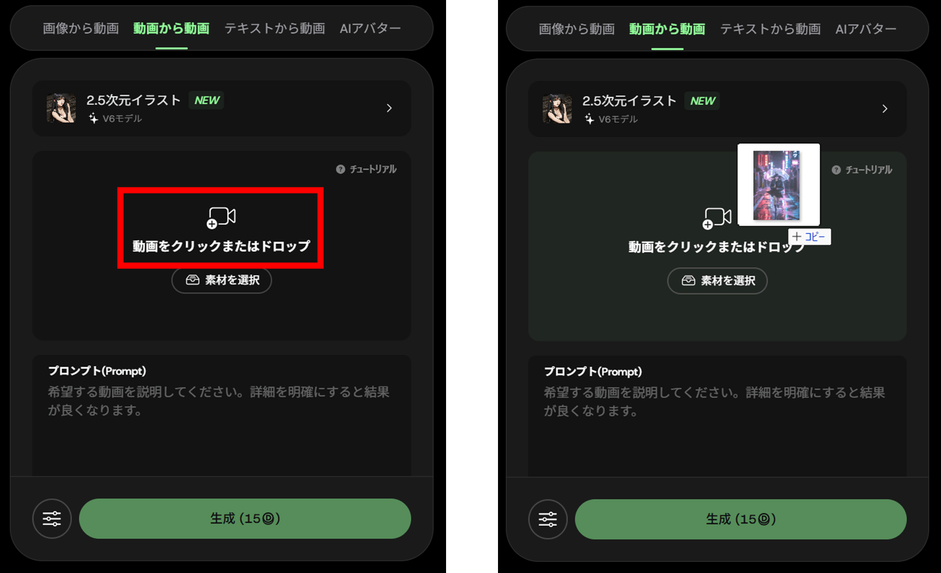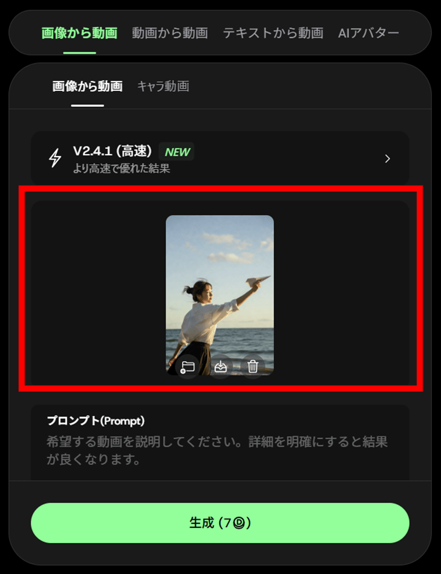 必要に応じてプロンプトやテンプレートを活用し、動画変換した際の動きを指示することができます。