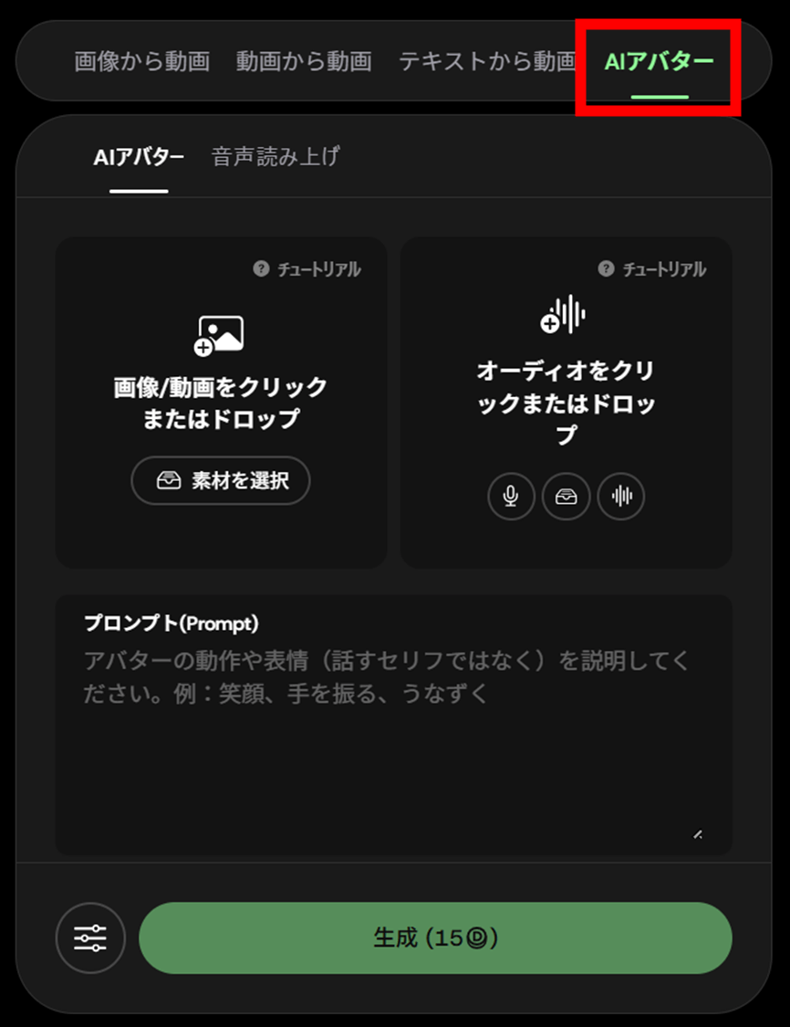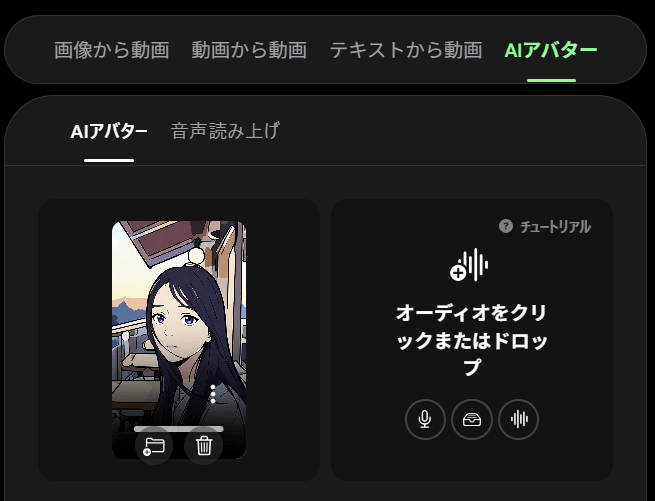 リップシンクを付けるためには、AIビデオのメニューの中から「AIアバター」を選択します。