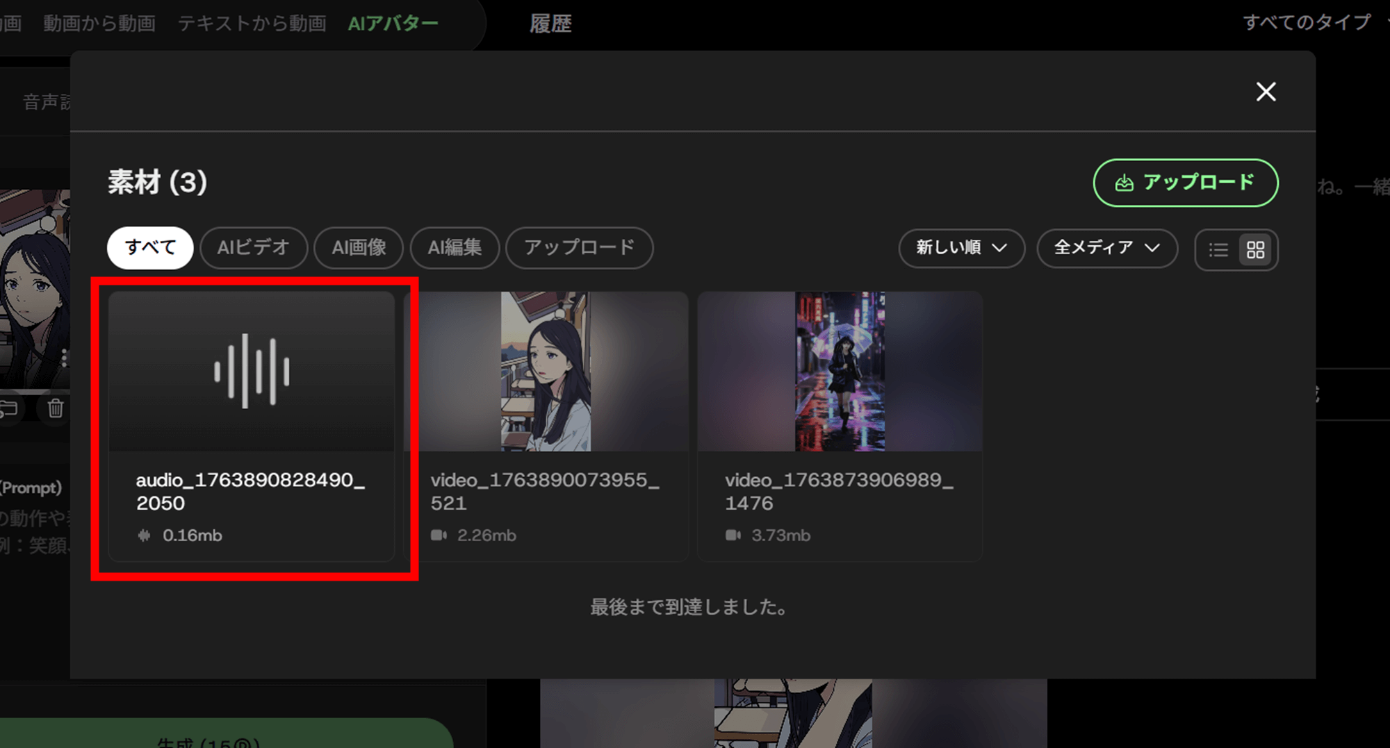 これで動画と音声のアップロードが完了しました。