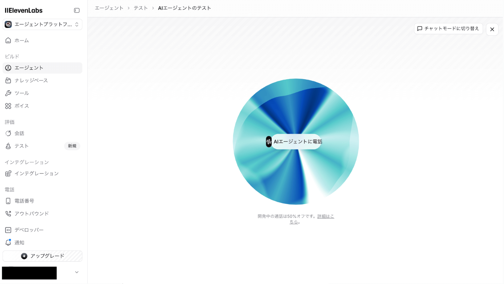 作成したワークフローは、必ずテストを行いましょう。ElevenLabsのテストコンソールを使い、シミュレーション音声やテキストで会話を実行します。遷移タイプを網羅的にテストしましょう。