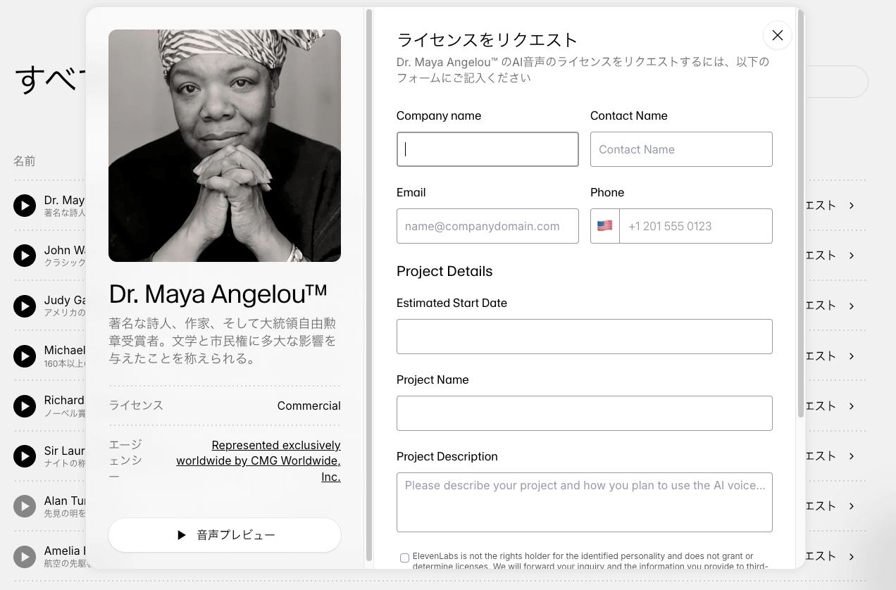 決定権はElevenLabsではなく、タレント本人や遺族など認可された権利者が保持しています。彼らが「Yes」と言わない限り、プロジェクトは進行しません。