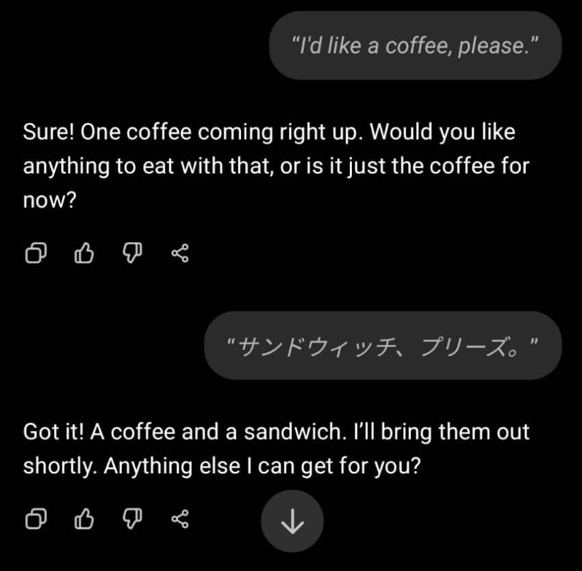 例えば、レストランのシーンで「このメニューにアレルギー食材は入っていますか?」といった予想外の質問を投げかけたり、ホテルのチェックインで「部屋の変更をお願いしたい」といったトラブル対応を加えたりします。