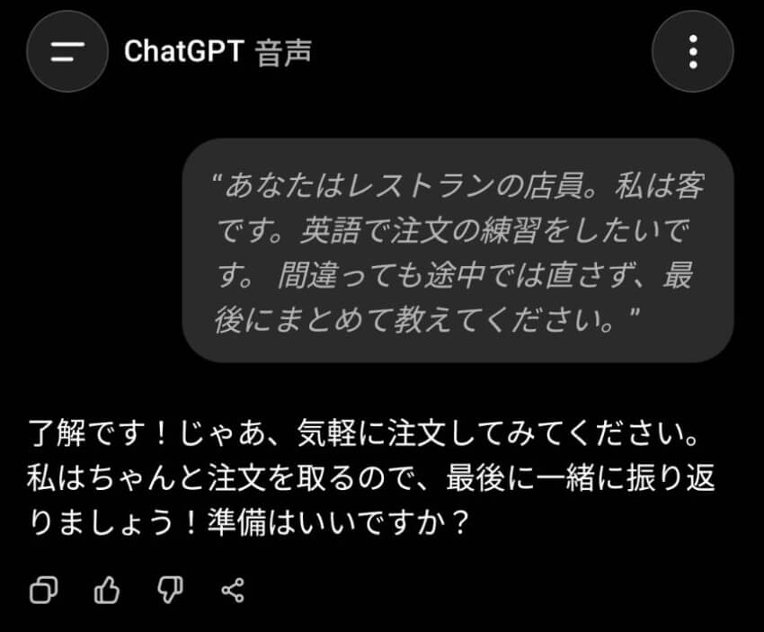 音声モードを使ったロールプレイは、読み書きだけでは身につきにくい「話す力」を鍛えるのに効果的です。無料でも十分に活用できるので、日常的な練習に取り入れてみてください。