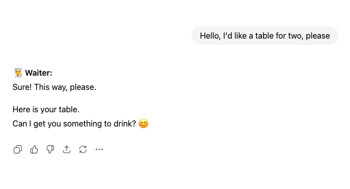 | 入店・席への案内 | 店員: “Good evening. Table for two?” 客: “Yes, please” | 人数を確認されたらシンプルに答える |