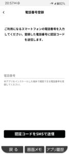 電話番号を登録すると、登録したスマートフォンにSMSが届くので、その番号を登録してください。