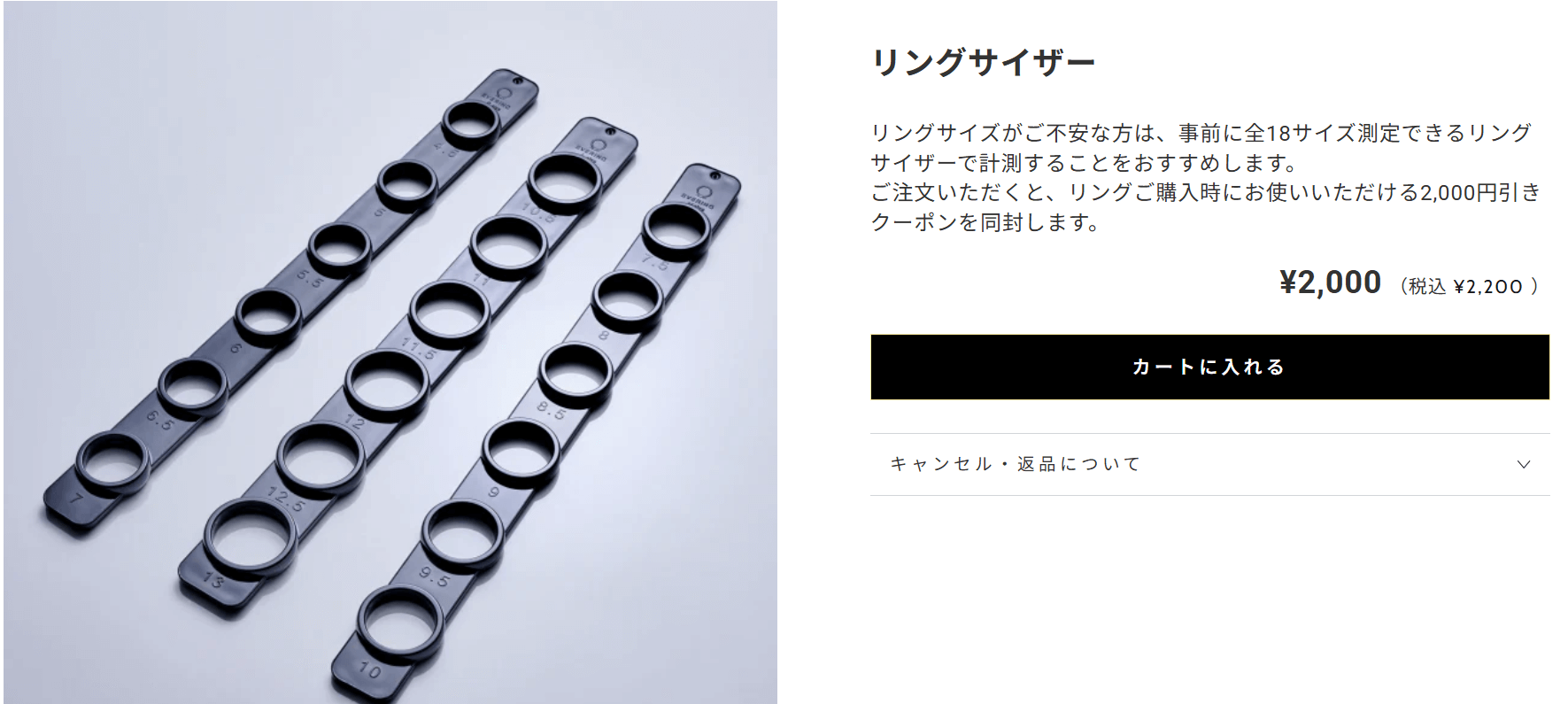 ただし購入前には「リングサイザー」でサイズを確認するか、7日以内に1回だけサイズ交換が可能なサービスを利用することをおすすめします。