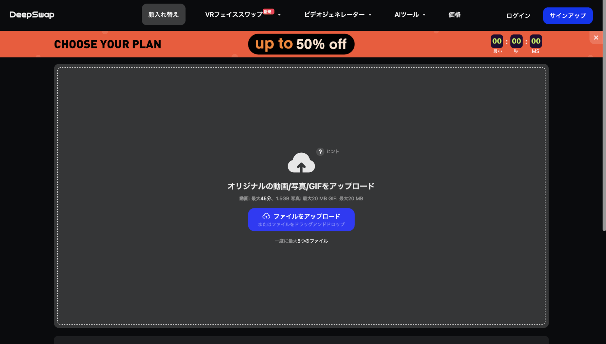 DeepSwapは、写真・動画・GIFのフェイススワップに対応したツールで、AIを使って人物の顔を別の顔に入れ替えることができます。画像や動画をアップロードするだけでAIが人物の顔を検出し、別の人物の顔を自然に合成します。