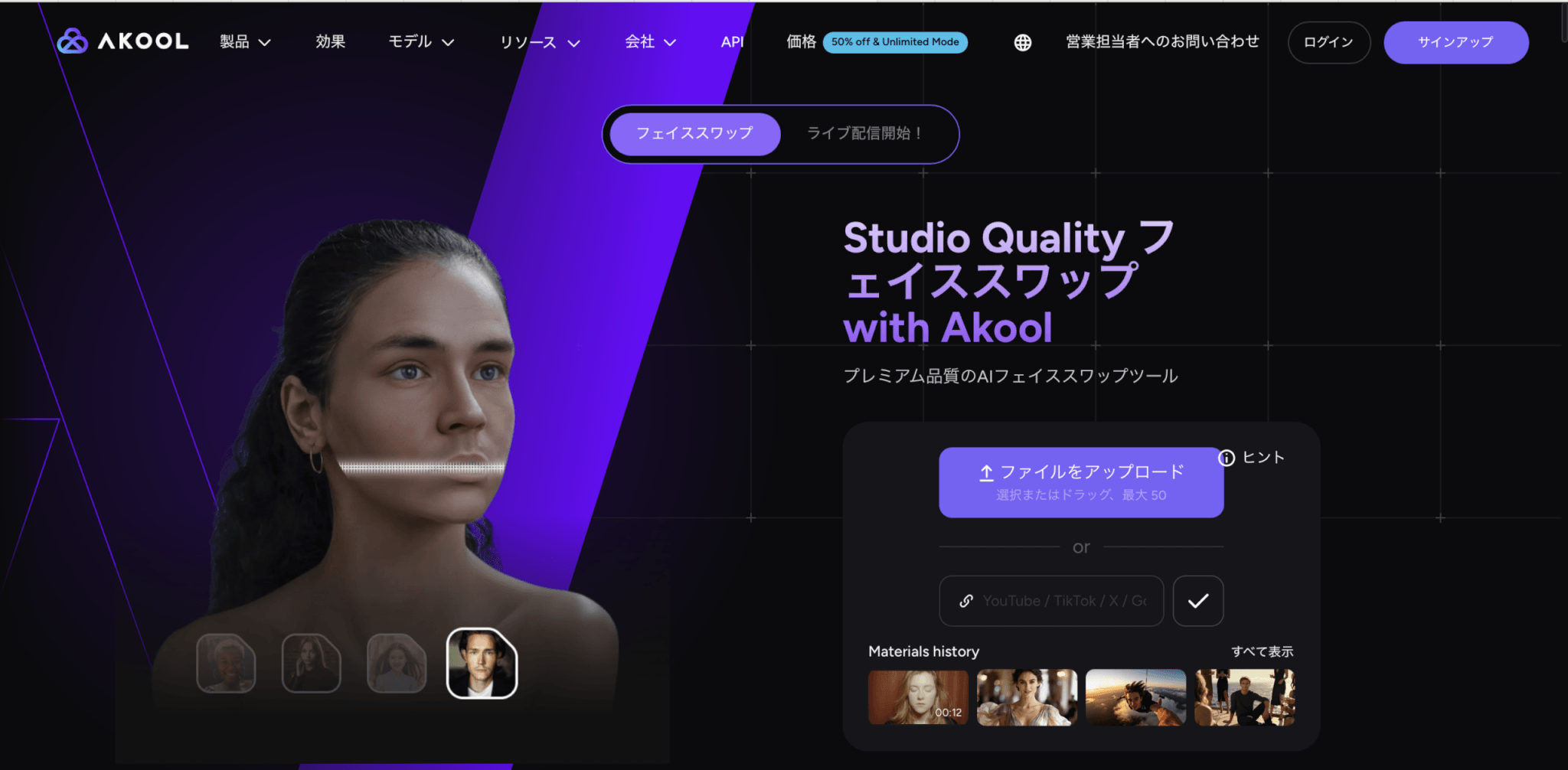 AKOOLは動画フェイススワップを本格的に活用したいクリエイターや企業に向いているAIツールです。