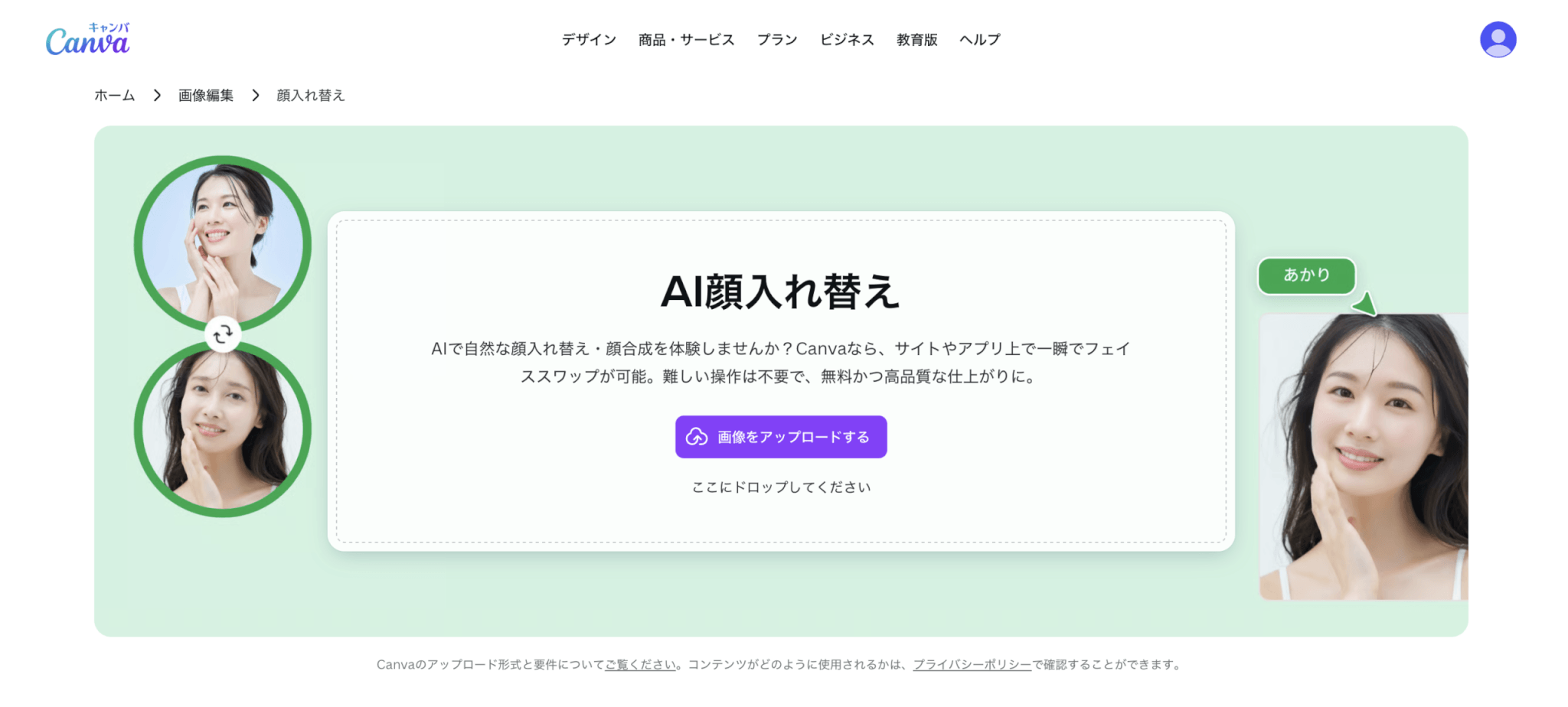 • アップロード画像の扱い:顔写真が保存されるのか、処理後に削除されるのかなどプライバシーポリシーを確認する。