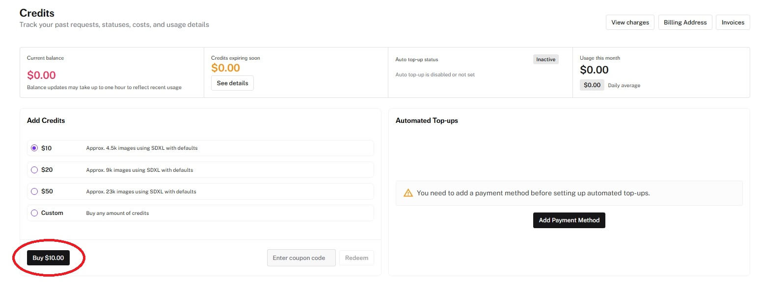 最低チャージ額は10ドルからとなっており、生成に応じて消費されていきます。
