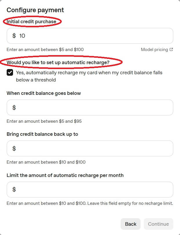 入力後「initial credit purchase」の欄で、どれだけクレジットを購入するかを設定します。