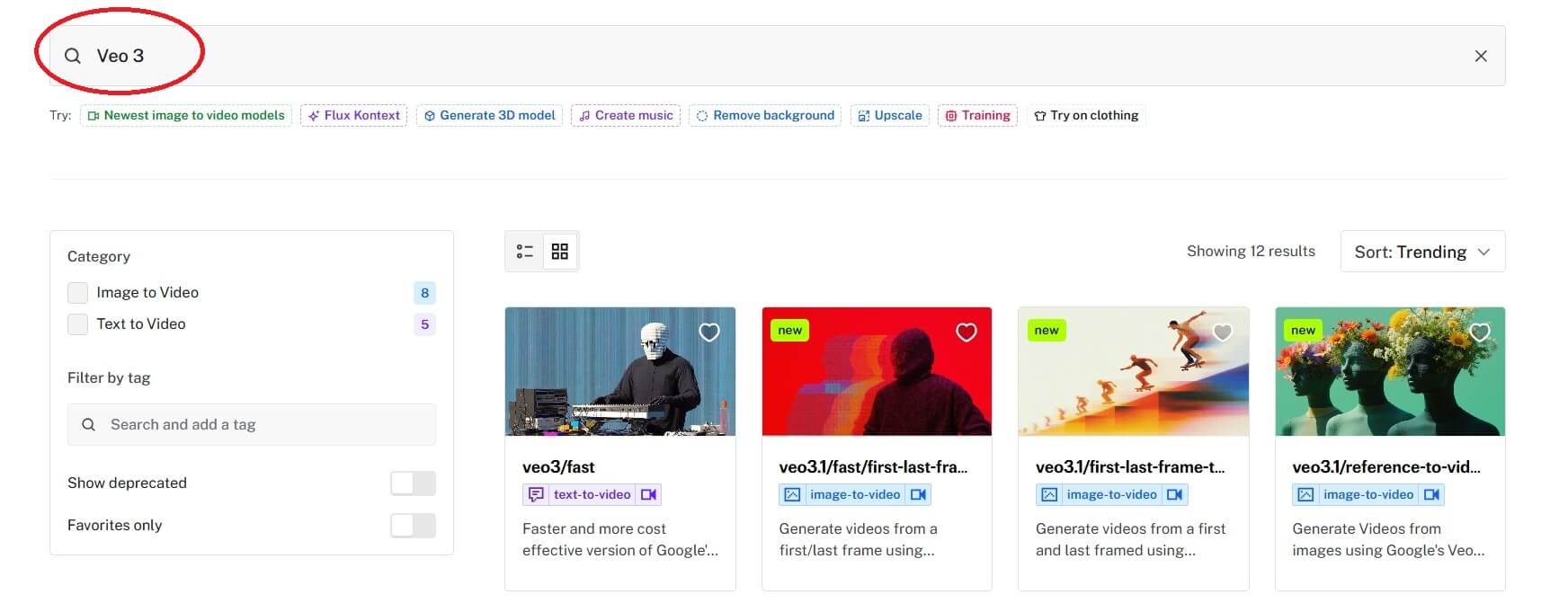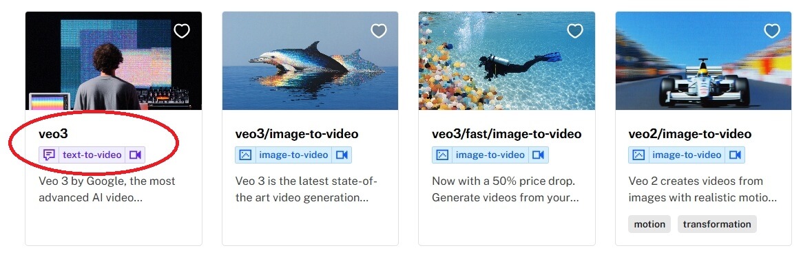 Veo 3を探すために検索ボックスにVeo 3と入力します。