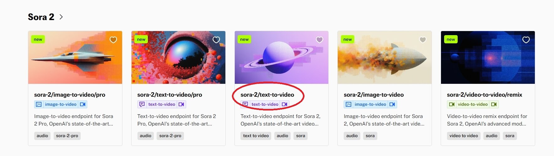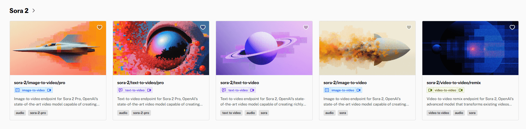fal.aiではSora 2の複数の生成モードに対応した専用エンドポイントが用意されています