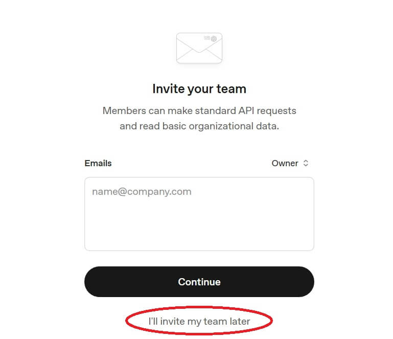「I’ll invite my team later」 を選択します。