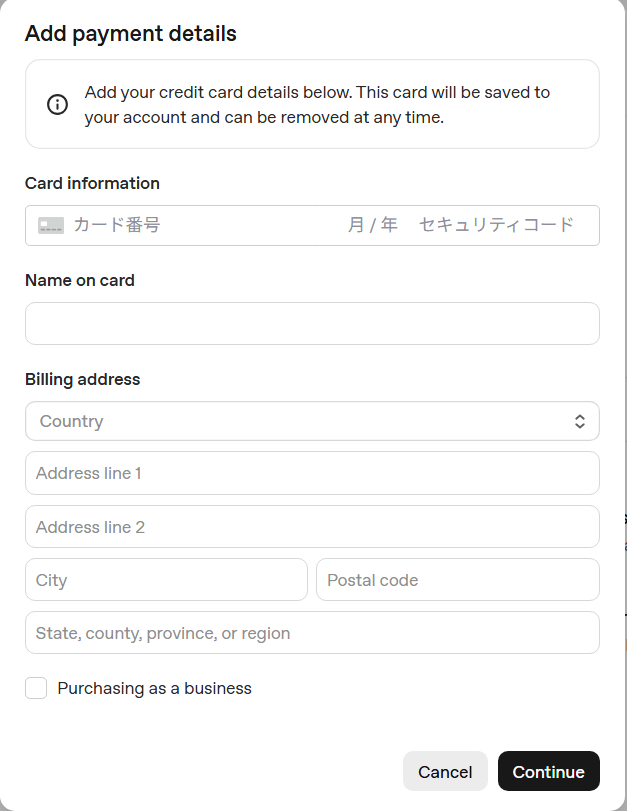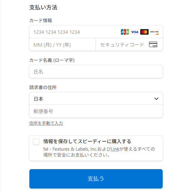 クレジット情報を入力します。