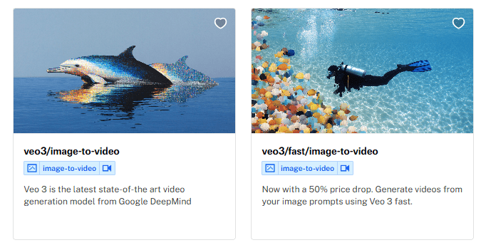 fal.aiでは「fal-ai/veo3」および「fal-ai/veo3.1」エンドポイントを通じてGoogleのVeo 3モデルにアクセス可能です。