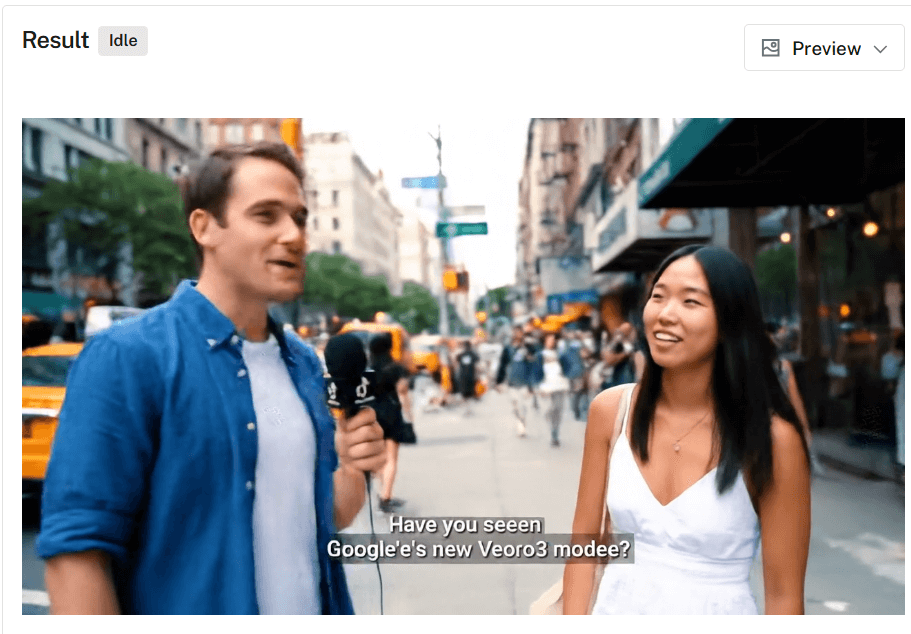 サンプルコードでは「忙しいニューヨークの歩道での気軽なストリートインタビュー」のような具体的なシーンを指定しましょう。