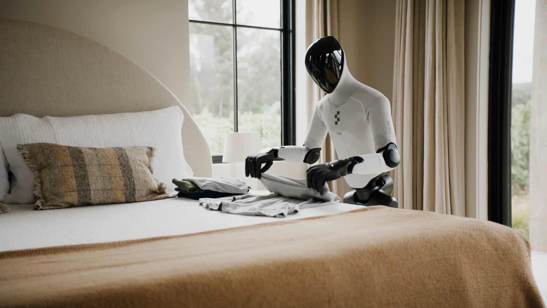 Figure 03は、前世代モデル「Figure 02」から大幅に改良されており、軽量化された筐体と拡張された関節可動域により、より自然な人間の動きを再現します。特に注目されるのは、手に搭載された高精度触覚センサーで、3グラム単位の圧力変化を検知できる点です。これにより、卵や紙のような繊細な物体も正確に扱えるようになりました。