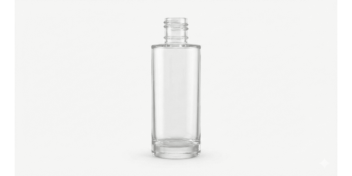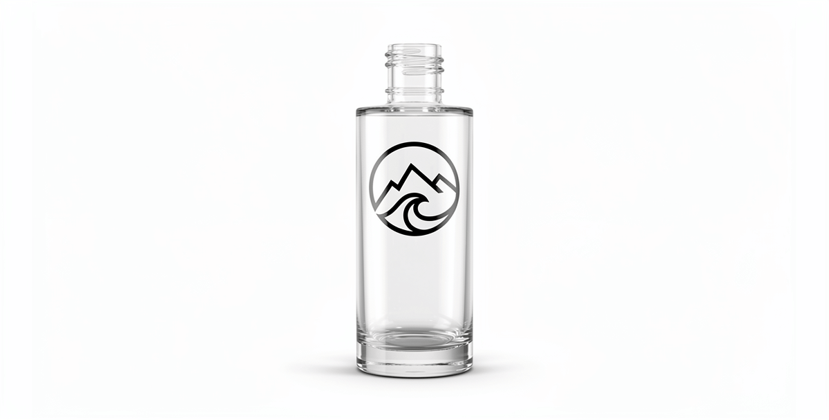 A realistic product photography of a cosmetic bottle, featuring the uploaded logo design on the center.