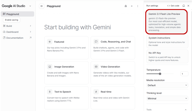 ここでは、Gemini 3.1 Flash-Lite を最短で動かすまでの手順を説明します。