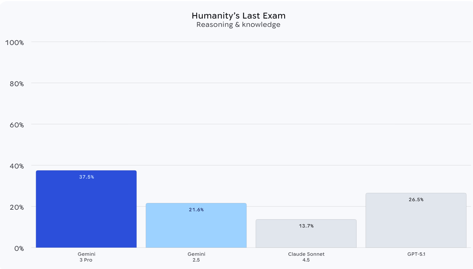 Gemini 3 Proの推論能力は、博士号レベルであると、Humanity’s Last ExamやGPQA Diamond(とても難問な試験)で科学的にも証明されています。