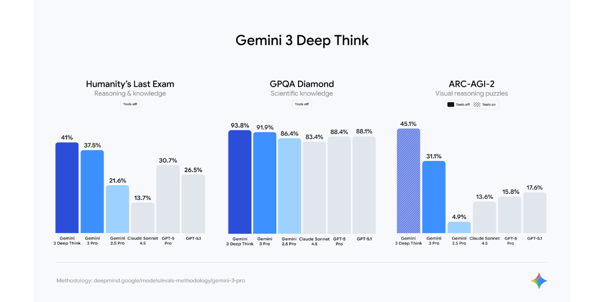 Googleの公式ブログでも、Gemini 3 Deep ThinkはGemini 3 Pro のパフォーマンスをさらに凌駕しましたと評価されています。