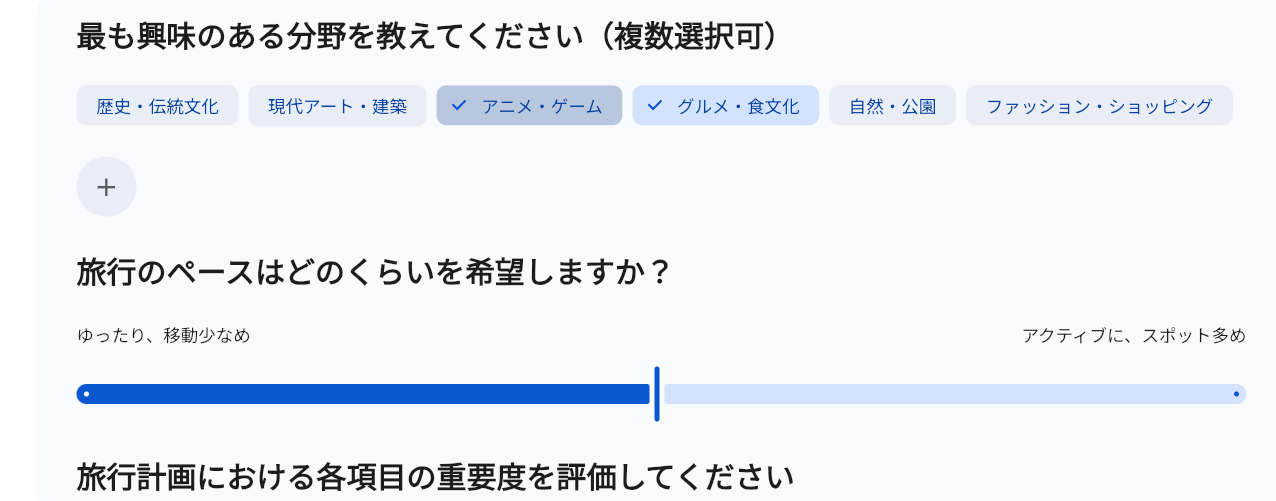 また、途中で興味のある項目をヒアリングして、ユーザーに合わせた提案もしてくれます。
