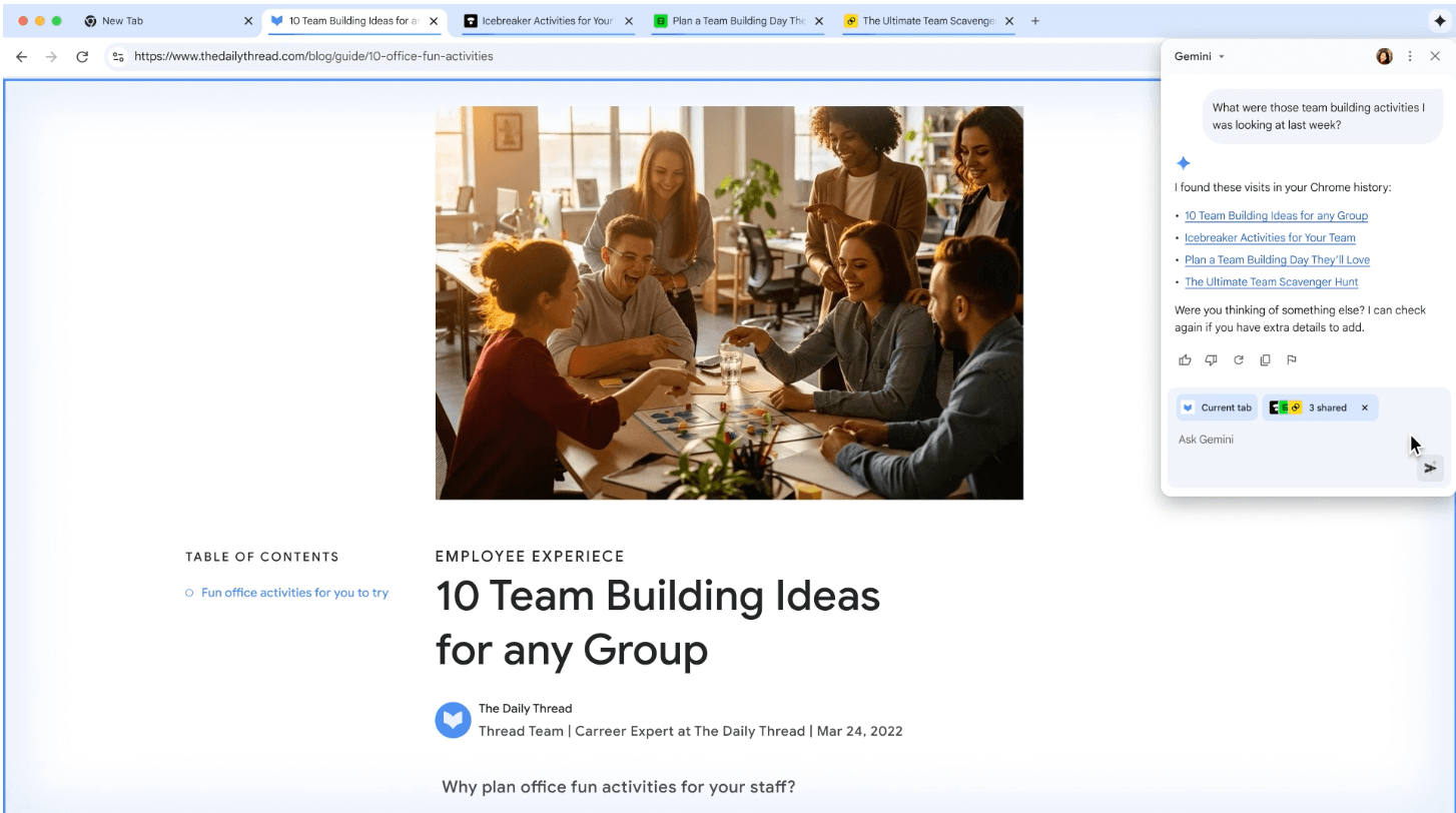 ブラウジング体験そのものを、AIがリアルタイムでアシストしてくれるというのがGemini in Chromeの核心です。