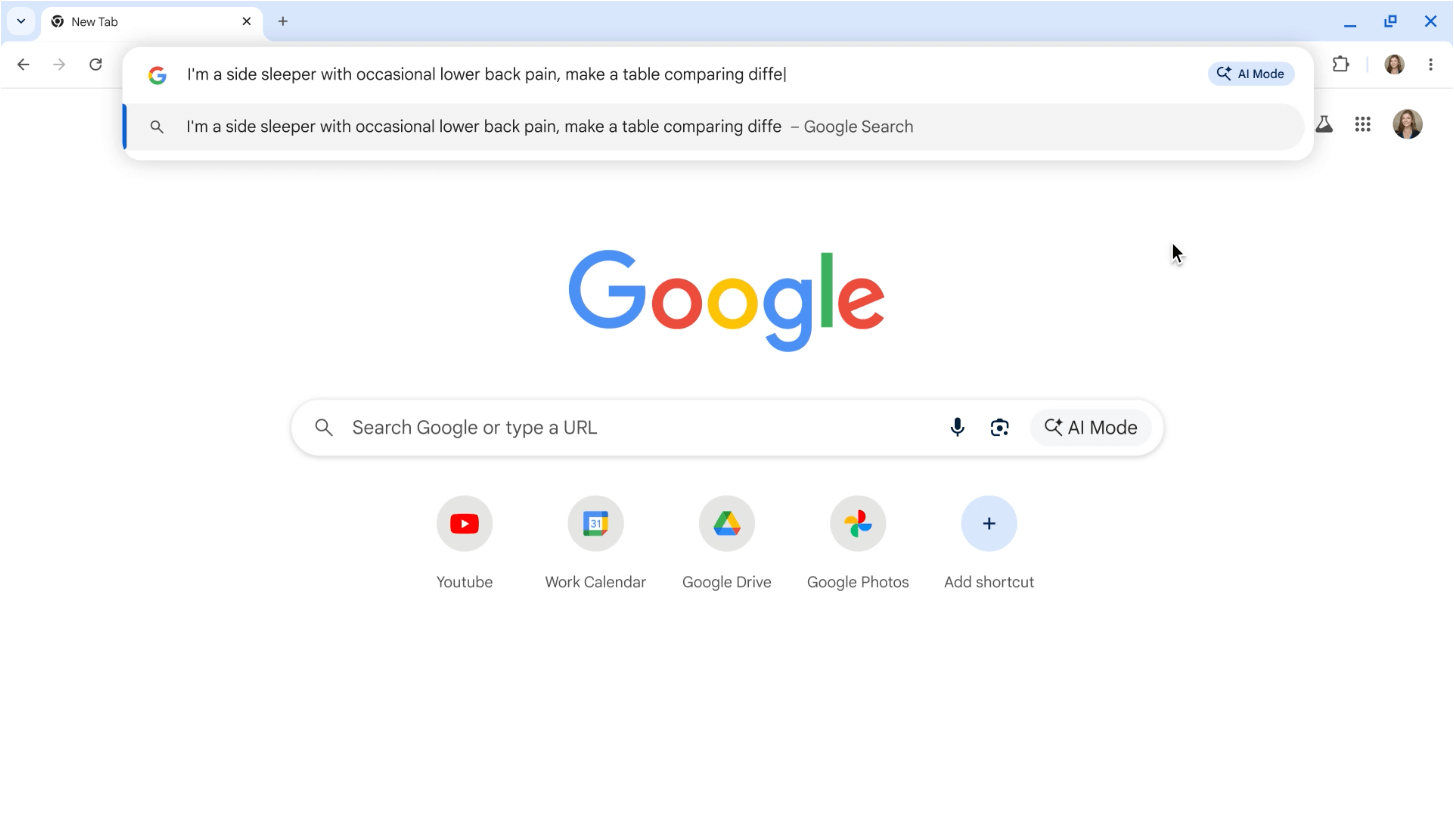 Chromeのアドレスバーに知りたいことを入力した後に「AI Mode」を押すと、その場がGeminiへの質問ボックスに変わり直接AIと対話できます。