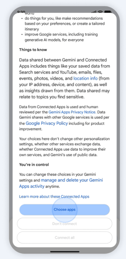 You’re always in control. You can choose which apps to connect, and you can turn Personal Intelligence off at any time.(Google official blog, Personal Intelligence)