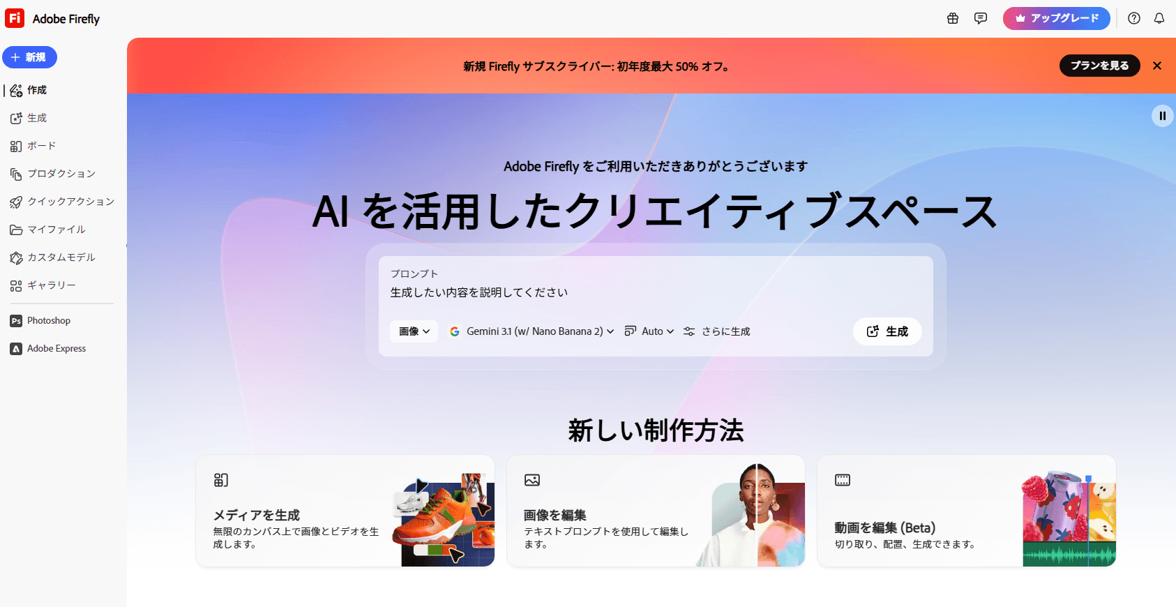 | Adobe Firefly | Standard:¥1,580 Pro:¥4,780 Premium:¥31,680 | 商用可、Photoshopとの連携 | |||