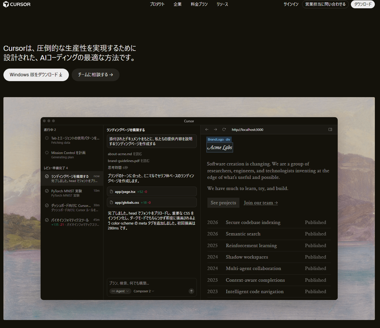 | コード生成AI | Cursor | Pro版2週間トライアル付 | Pro:$20 Ultra:$200 Teams:$40/1人 | コマンドにより日本語化 | 多様なオート機能 |