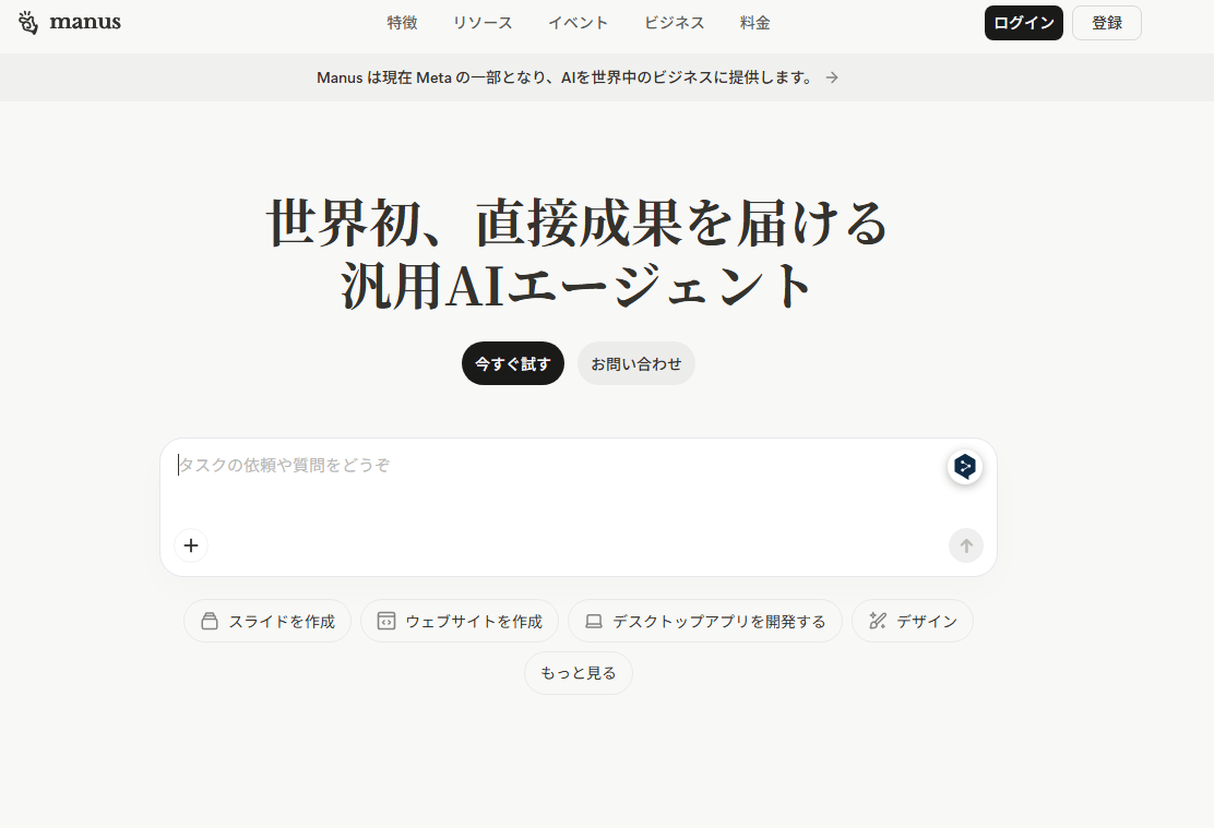 Manusは、簡単な指示を出すだけで、リサーチから資料作成までを一気通貫で自動実行する「自律型AIエージェント」です。