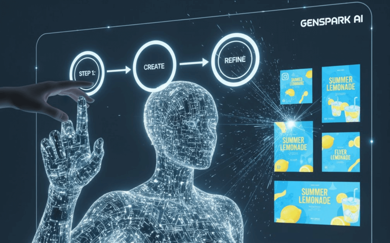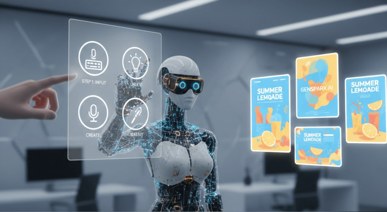 GensparkのAIデザイナーとは、簡単な指示だけでデザイン一式を自動生成できる革新的なツールです。