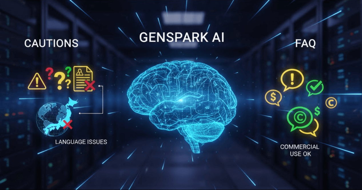 Genspark「AIデザイナー」の注意点とFAQ:日本語・商用利用