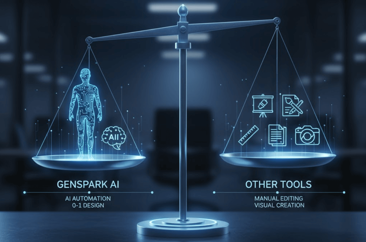 Genspark AIデザイナーと他ツールの比較:Canva/Adobe Express/Midjourney